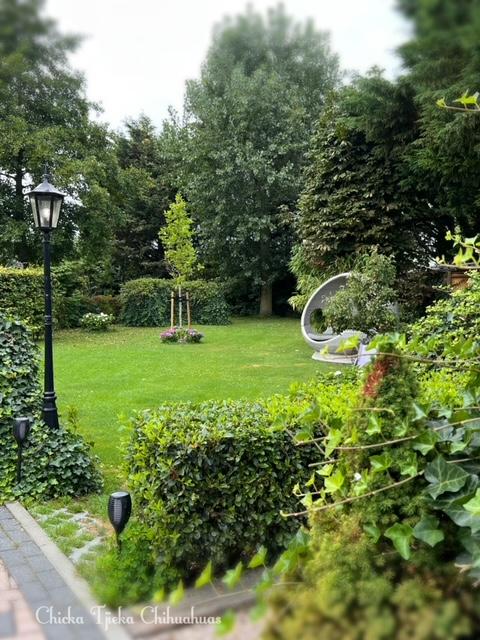 Onze prachtig tuin vormt het hart van het terrein en verbindt de verschillende speelvelden met elkaar.Hier kunnen de honden heerlijk rennen, ravotten en op ontdekkingstocht gaan.